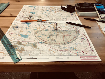 Tiistaina kello soi seitsemältä. Aloitimme päivän ravitsevalla aamupalalla, minkä jälkeen osa työryhmästä aloitti kirjalliset työt ja loput siirtyivät maastoon käytännön töihin. Olosuhteet olivat erinomaiset talviammuntojen valmistelulle: pakkasta joitakin asteita ja lunta oli parisen kymmentä senttimetriä vähemmän kuin vuosi sitten, mutta kuitenkin lähemmäs puoli metriä. Maastossa tapahtuvaan valmistelutyöhön liittyi vaara-alueiden määrittäminen ja eri vaiheiden hiominen sulavaksi sekä turvalliseksi. Työryhmän piirto-osasto, mihin itsekin kuuluin, pääsi sitä mukaa piirtämään vaara-aluepiirroksia kun maastosta tuli mittauspartiolta tietoja. Ensimmäiset piirrokset olivat mukavia, sillä edellisestä kerrasta oli kulunut jo puolisen vuotta. Tässä kohtaa en vielä aavistanut, mitä seuraava 36 tuntia pitävät sisällään. Maastossa ampumapaikalla päivä oli ollut tuottoisa ja rakentamistöissä oli edistytty erinomaisesti. Illalla kirjallinen osio oli lähes valmis ja seuraavana päivänä tiedossa oli vain pientä hiomista.
