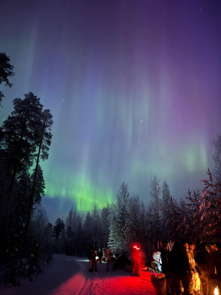 Tiedusteluharjoitus oli monelle ensimmäinen ja ehkä viimeinenkin kosketus kyseisiin aiheisiin. Vaikka välillä saattoi tuntua vaikealta selvitä hankalasta tilanteesta, oli ryhmä aina tukena ja puski kaikki maaliin. Näyttävät revontulet odottivat meitä maalissa, jossa sukset sai heittää telakuorma-auton lavalle ja hypätä kyytiin takaisin kohti majoitusaluetta.